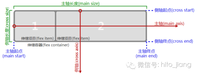 容器默认有两个轴:主轴(main axis)和侧轴(cross axis)。
