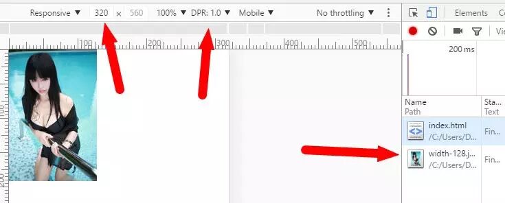 别老是看着“别人的妹子”,请注意红色箭头,DPR就是设备像素比,不同的像素比,会显示不同的图片。